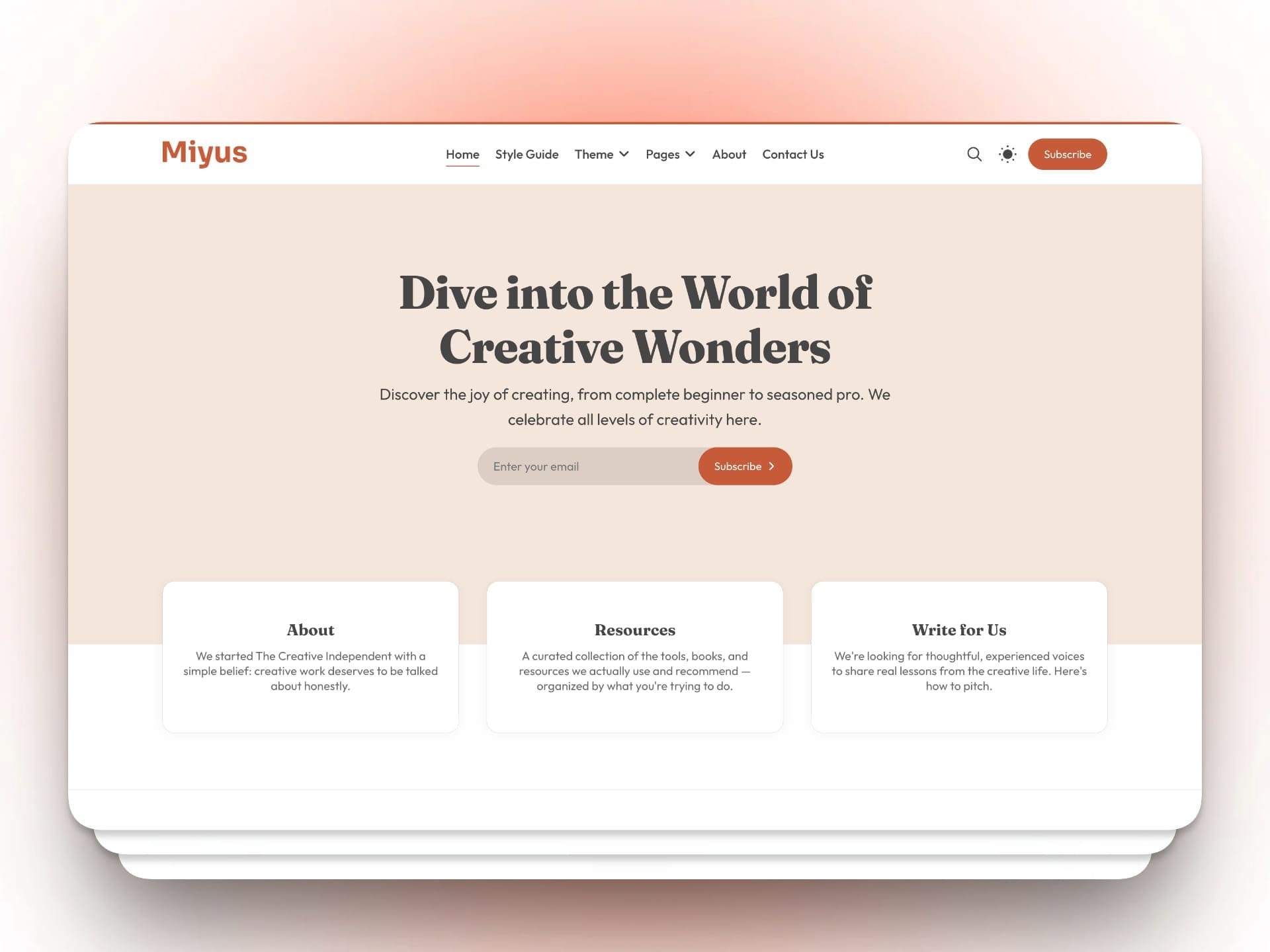 Miyus is a sophisticated, editorial-first Ghost CMS theme designed for modern media businesses and digital entrepreneurs. It blends high-impact storytelling with a clean, professional aesthetic to give your content the authority it deserves.